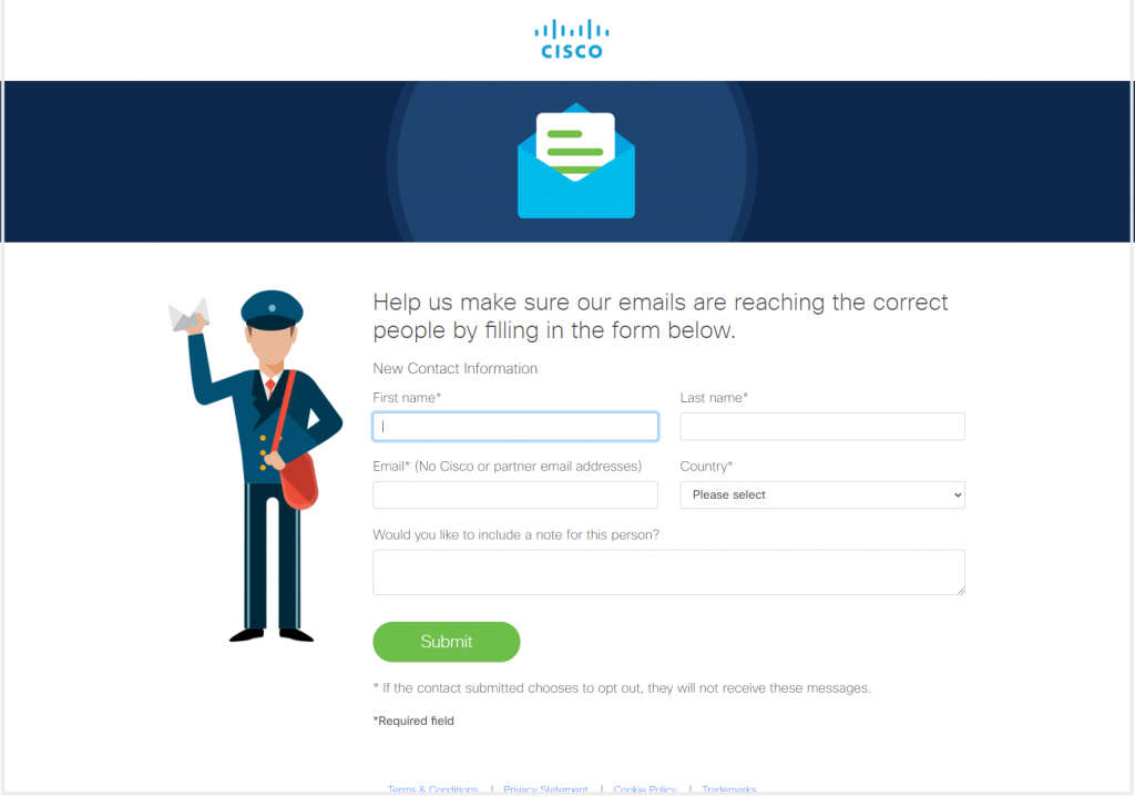 At Cisco, we have been trying to help our customers along each step of their post-sale experience for nearly a decade. And as a key part of that experience, we want our customers to have more control over what communications they receive – a more intentional step towards the right message, right person, right time goal that we are all striving to achieve.