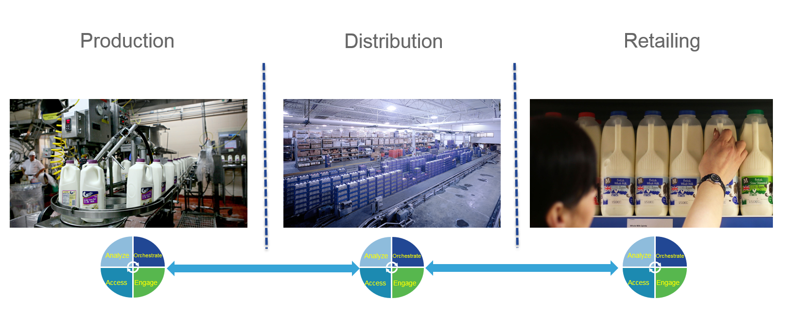 For example, for a product like milk, here is a simplified view of the physical value chain: