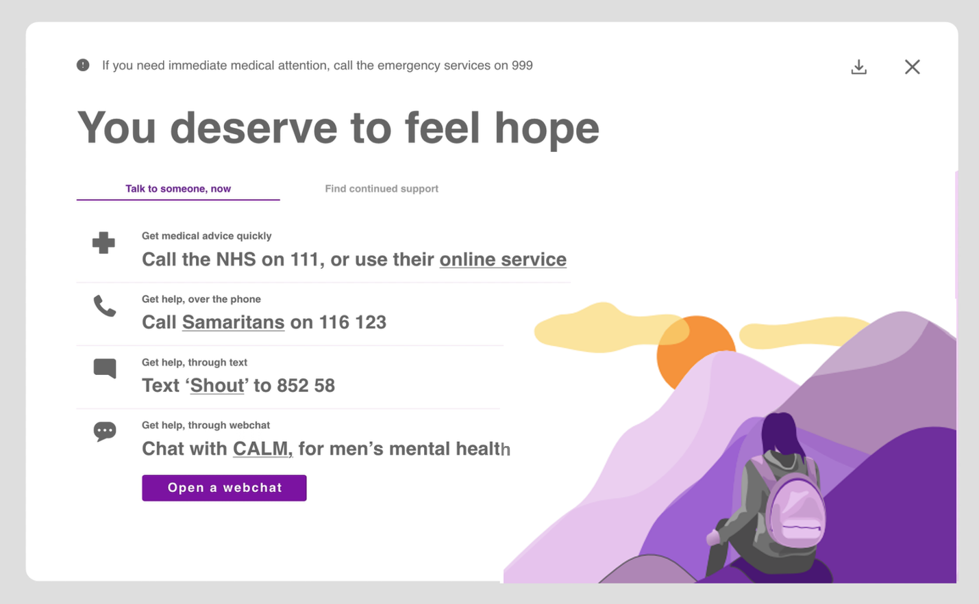 - Include mental health and suicide prevention resources whenever possible because someone might need them.
