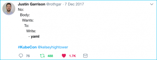 The most retweeted tweet from KubeCon Austin was a quote from @kelseyhightower keynote