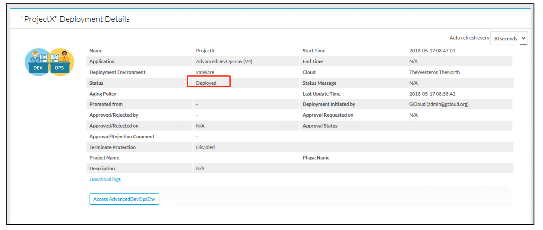 Watching the progress in CloudCenter: last deployment state is “Deployed”