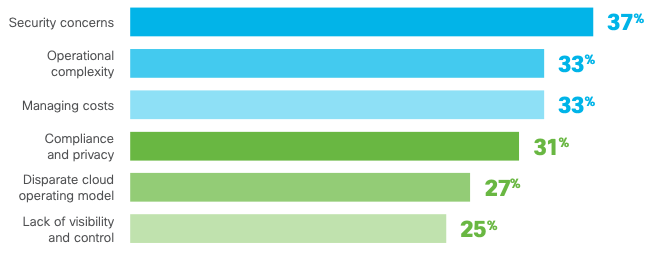This distributed IT landscape is creating multifaceted operational challenges. When we asked what their top challenges are with utilizing multiple clouds, the participants in the survey gave us several responses: