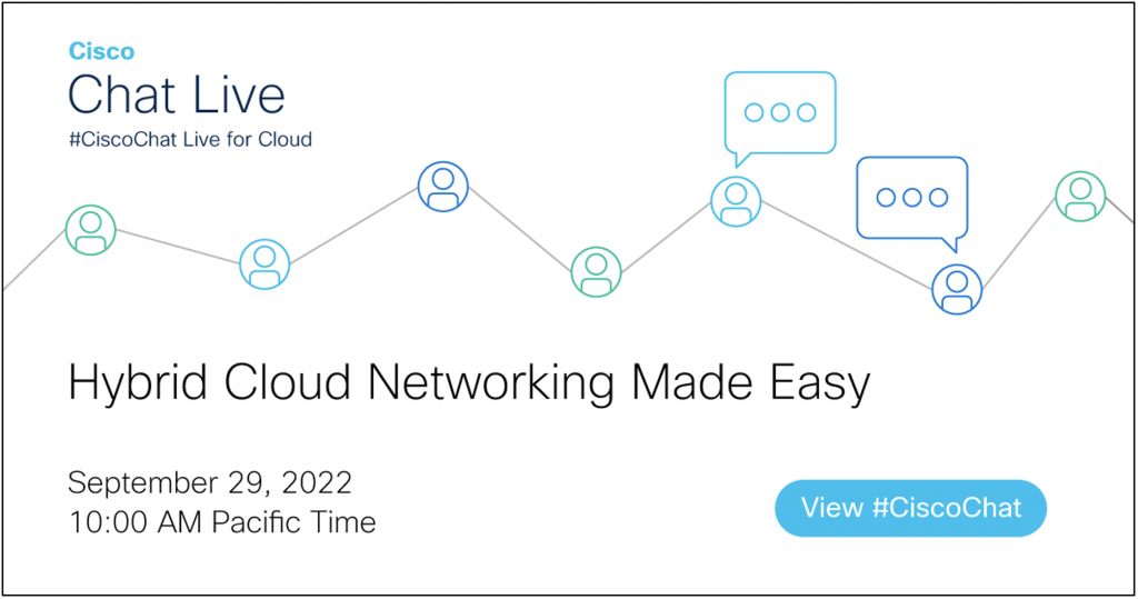 Providing a hybrid cloud operations platform with unified experience across teams addresses many of the challenges. Operating cloud smart across on-premises and public cloud networks requires some new approaches and new technology. To dig into that, I’ve asked two of our experts from the Cisco Cloud Networking team to join me for a CiscoChat session to discuss the landscape and latest innovations. Please join us!
