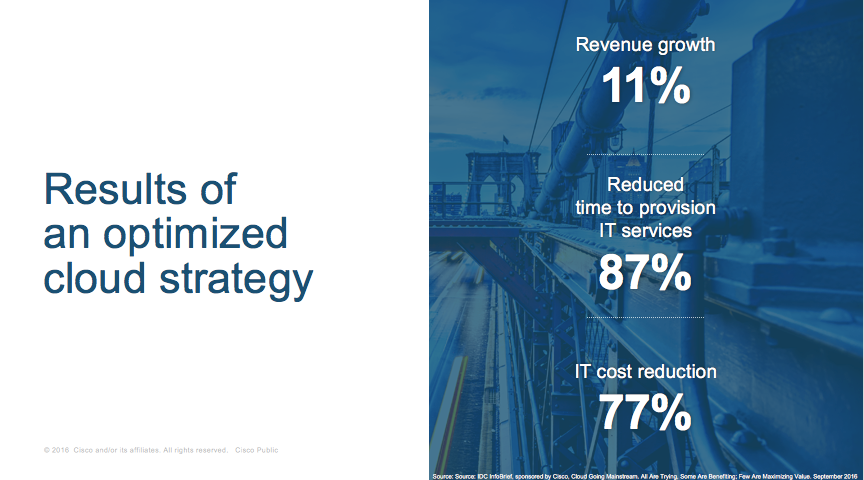 The #MicDrop moment here is to realize that you need to embrace the cloud rather than shy away from it. The sooner you do this, the more you will be surprised at the business benefits it can bring (see IDC results below) while making your brand and organization more appealing to us millennials, both as employees and consumers. Imagine your brand being amplified over our vast social footprint…we can become your biggest advocates without you spending any marketing dollars!