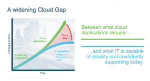 For all these reasons and many more, IT departments need to evolve from being gatekeepers struggling to ‘catch up’ with growing business demands to trusted IT enablers of solutions across hybrid IT environments (cloud and non-cloud infrastructure, applications and management) from many different providers and consumption models. This way they can elevate themselves to strategic advisers who expedite the journey to the cloud instead of being viewed as a bottleneck to growth and innovation. However, this is easier said than done due to an ever-expanding ’Cloud Gap’ between what cloud applications and LOB stakeholders require and what IT is able to reliably and confidently support today, when it comes to their people, processes, and tools. How can you find that balance between meeting the demands of a young generation looking for innovative solutions while simultaneously ensuring the highest standards of operational excellence, security, governance and compliance?