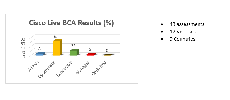 Cisco, in collaboration with IDC, has developed a cloud assessment tool, the Business Cloud Advisor that can help organizations assess themselves in their cloud maturity level. During Cisco Live, we had some attendees doing the assessment and here are some findings: