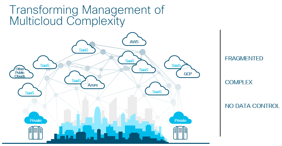 Every company is going through changes that are becoming radical for their business survival. In some cases, we’ve seen some “cloud mandates” which means that there is an instruction from the top down of the organization to go all cloud but what does that really mean? What does a cloud first strategy mean or cloud native? My point here is that to achieve any of those, you need to enable your infrastructure, your users, applications and data to run smoothly in a safe connection when traveling to or from the public cloud and making sure that you understand what the performance is. That is why, at Cisco, we believe that every customer needs to have a strong base in networking, security, analytics and management. By achieving this, you’ll be able to navigate in a fragmented and complex multicloud world.