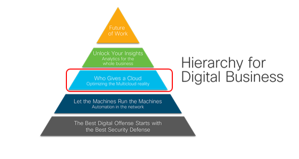 Ruba Borno, Vice President of Growth Initiatives and Chief of Staff to CEO, kicked off Cisco Live on Monday doing an analogy of Maslow’s hierarchy of needs with 6 imperatives for business digitization. According to Ruba’s blog, there are six imperatives every organization should be thinking about when approaching business digitization. The third imperative focuses on the multicloud world. I’ll continue this blog from there.