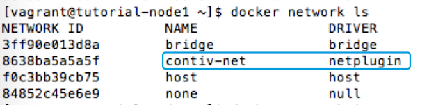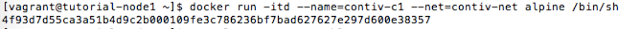 We now connect a new container to the contiv-net network as it is seen by Docker: the command is identical when you use a network created by Contiv.