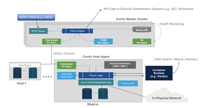 Contiv is made of a master node and an agent that runs on every host of your server farm: