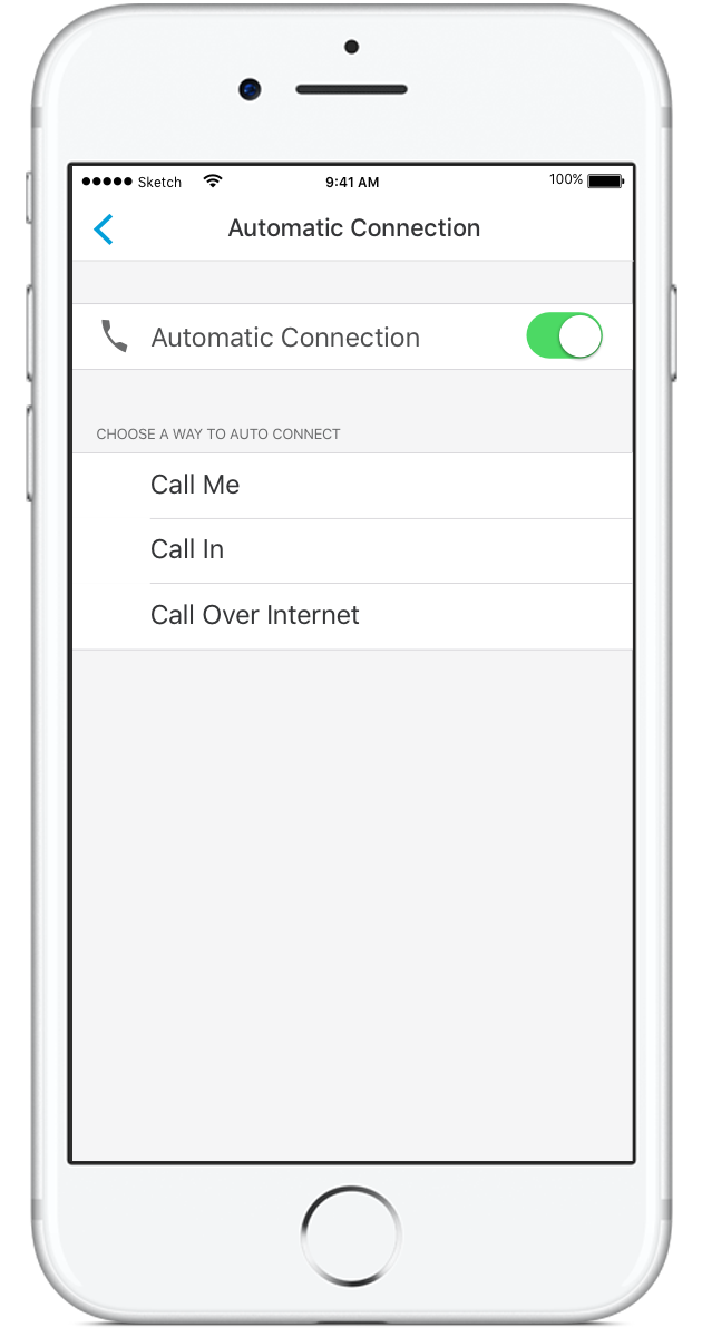 What if you’re working on the go? Mobile devices are where emerging usage patterns have become mainstream: We don’t dial or enter numbers, we simply tap. That’s why we’ve simplified the mobile meeting join experience, too. The app knows the call-in number for the meeting and it knows your phone number. With “Automatic Connection,” you can have the meeting call you, you can automatically call in, or you can automatically call over Internet. The best part of this feature? You don’t have to enter numbers for any of these options.