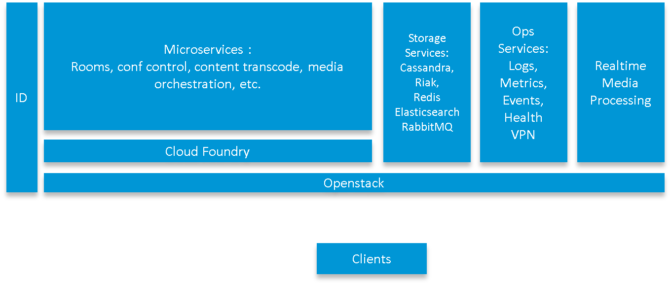 Several of our functional components require tight real-time performance and direct, non-proxied network access and thus run natively on OpenStack, and not on Cloud Foundry. This includes our software that does the real-time voice and video-conferencing functions.