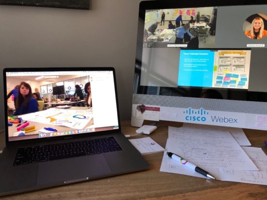 Thanks to the power of collaboration technology, my experience as the only virtual attendee was truly seamless and actually pretty fun too. I remained fully engaged in the entire session with my DX80’s HD video. I was able to follow the facilitator and my teammates with ease with the speaker tracking capabilities of the Room Kit in the North Carolina conference room. To top it off, I was actually able to incorporate my input on the journey mapping exercises using real-time whiteboarding.