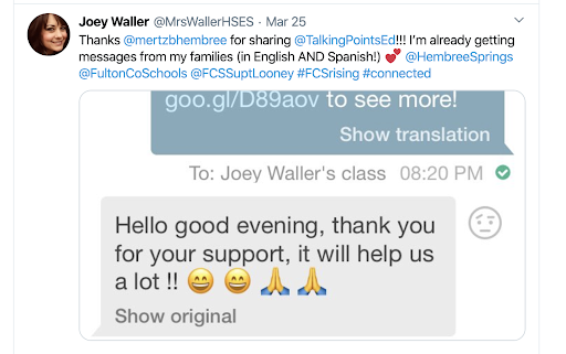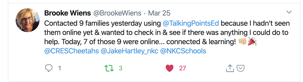 Recently, teachers shared how TalkingPoints is helping them stay connected with students’ families during school closures: