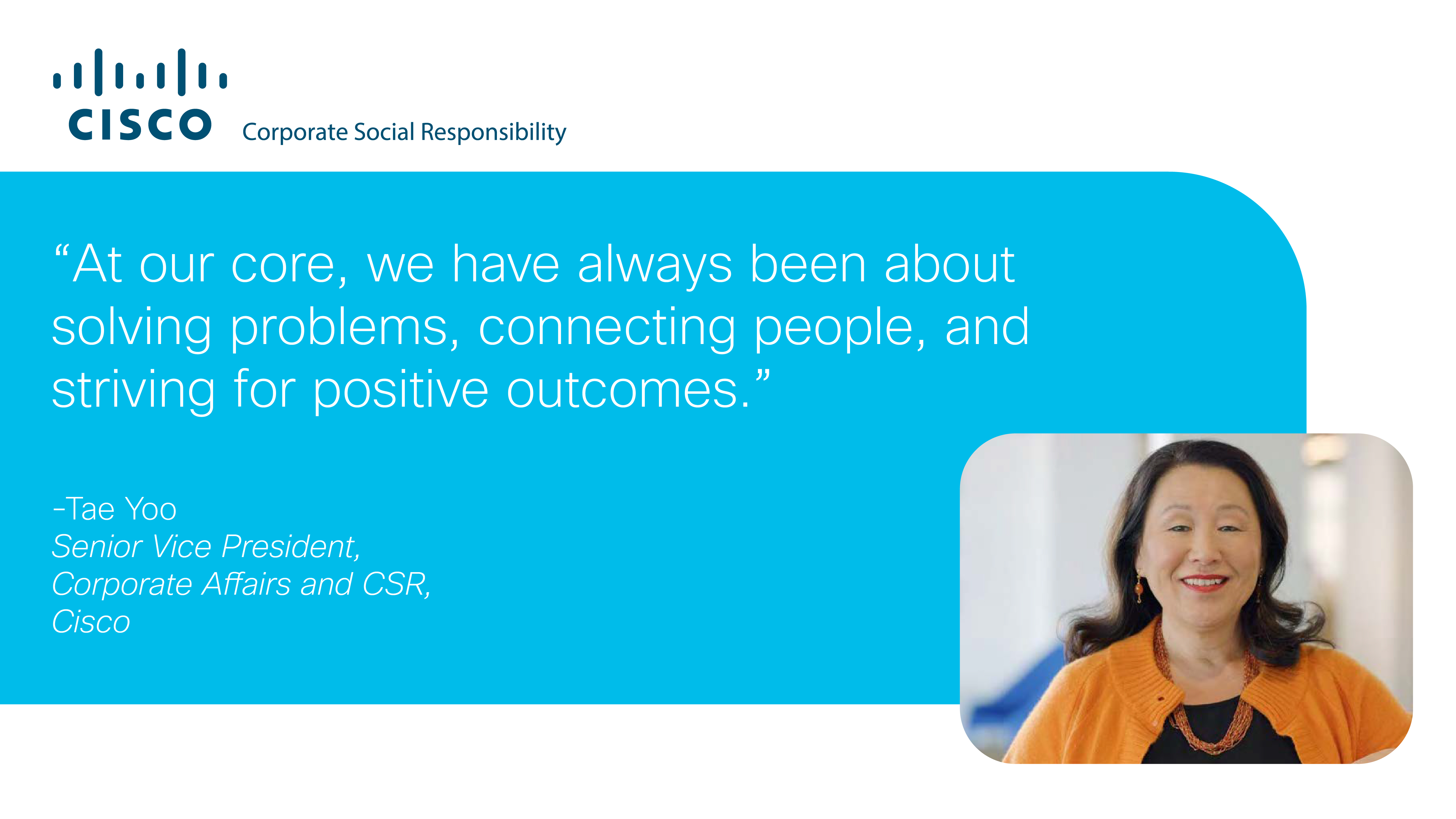 At Cisco, we recognize we cannot solve the world’s problems on our own, but we have an opportunity and a responsibility to do our part. Last week we launched our 2018 Corporate Social Responsibility Report, celebrating our achievements to date as well as how we are addressing the areas where we can do more.