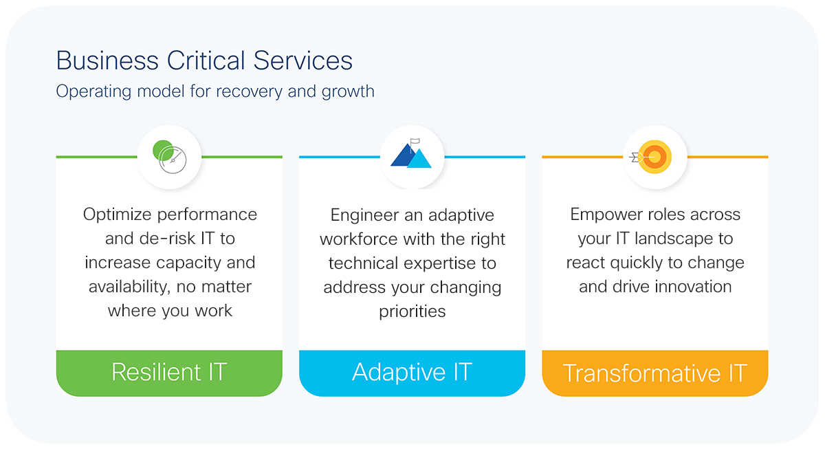 Cisco Business Critical Services (BCS) created an operational model for business resiliency, enabling organizations to perform even in challenging times. Grounded in best practices and Cisco intellectual capital, organizations can use the BCS framework to drive transformation by improving IT resiliency and adaptability.