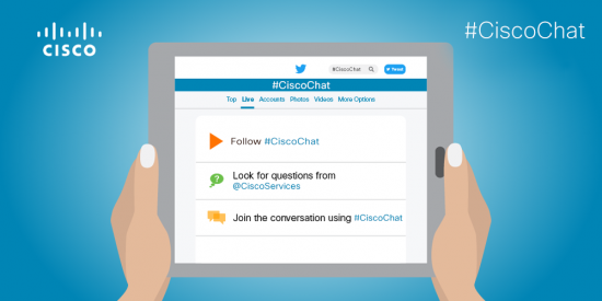 - Add to the conversation by using the #CiscoChat hashtag in your tweets. This way, others can find your contributions to the discussion.
