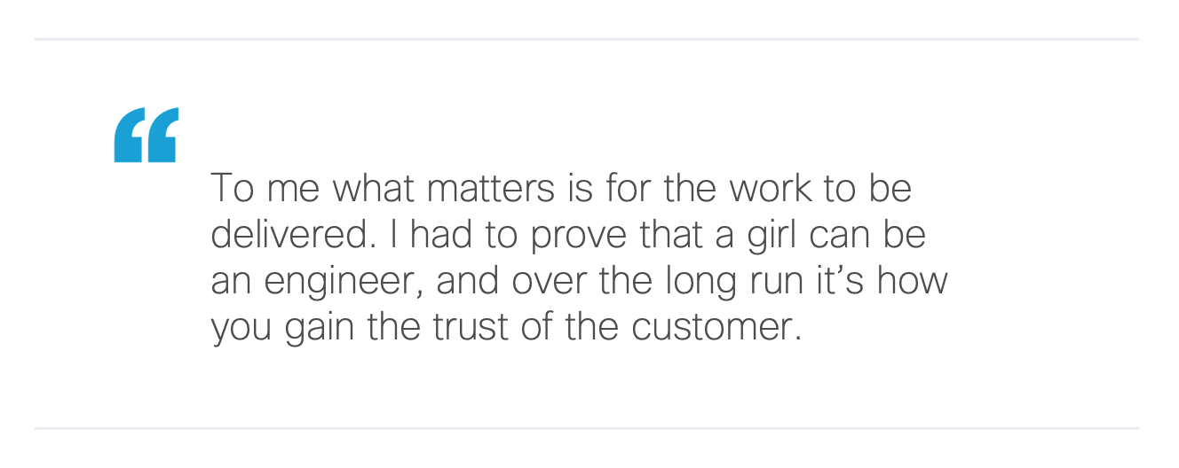 To me, what matters is for the work to be delivered. I had to prove that a girl can be an engineer, and over the long run it's how you gain the trust of the customer.