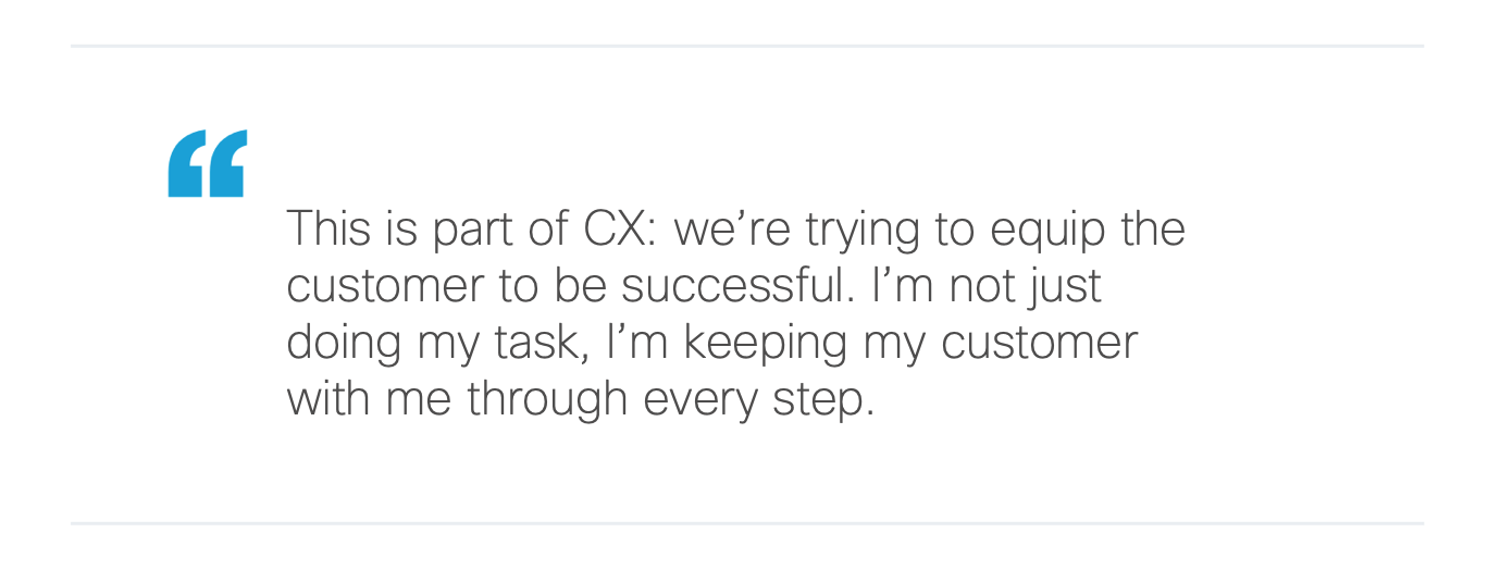 This is part of CX: we're trying to equip the customer to be successful. I'm not just doing my task, I'm keeping my customer with me through every step.