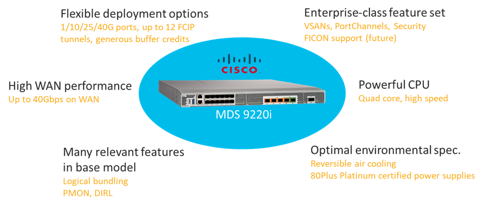 - Cisco is the market leader for switches and routers and has validated their compatibility with the 25G FCIP ports on MDS 9220i, including optics. This makes Cisco MDS 9220i a solution play rather than a point product.