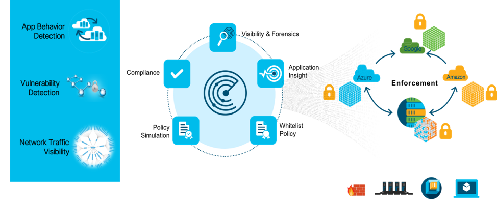 As part of the overall solution for workload protection, Cisco provides the most comprehensive solution as part of an architectural approach. Cisco Tetration works with Cisco’s security portfolio, including Cisco Firepower Next-Generation Firewall (NGFW), Next-Generation IPS (NGIPS), Advanced Malware Protection (AMP), and Stealthwatch, to deliver effective security that follows the workload everywhere.