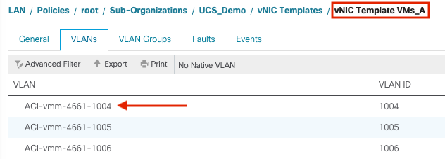 As shown in the screen capture above, ACI assigned VLAN 1004 from the dynamic pool to the newly created port group mapped to our EPG. This is where the wheels fell off previously because the VLAN was not yet defined within the UCS fabric. We can now go back into UCSM to verify.