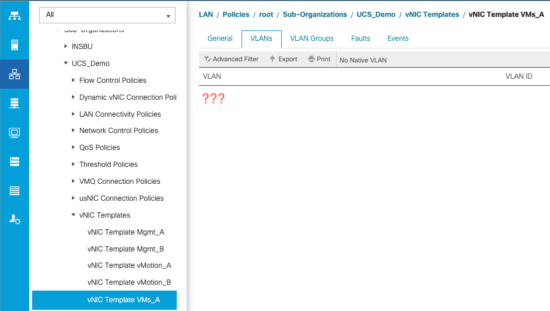 From the screen captures above we can see that the port group was properly removed from the VDS in vCenter AND the VLAN was also removed from the VLAN group and VNIC templates in UCSM.