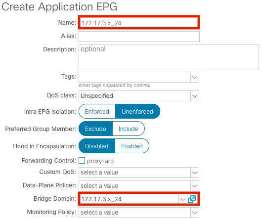 Now that the integration setup is complete let’s create a new EPG and see how things have changed operationally. Back in the ACI user interface we can repeat the procedure from Step 3 in the VMM Integration with ACI section to create a third EPG.