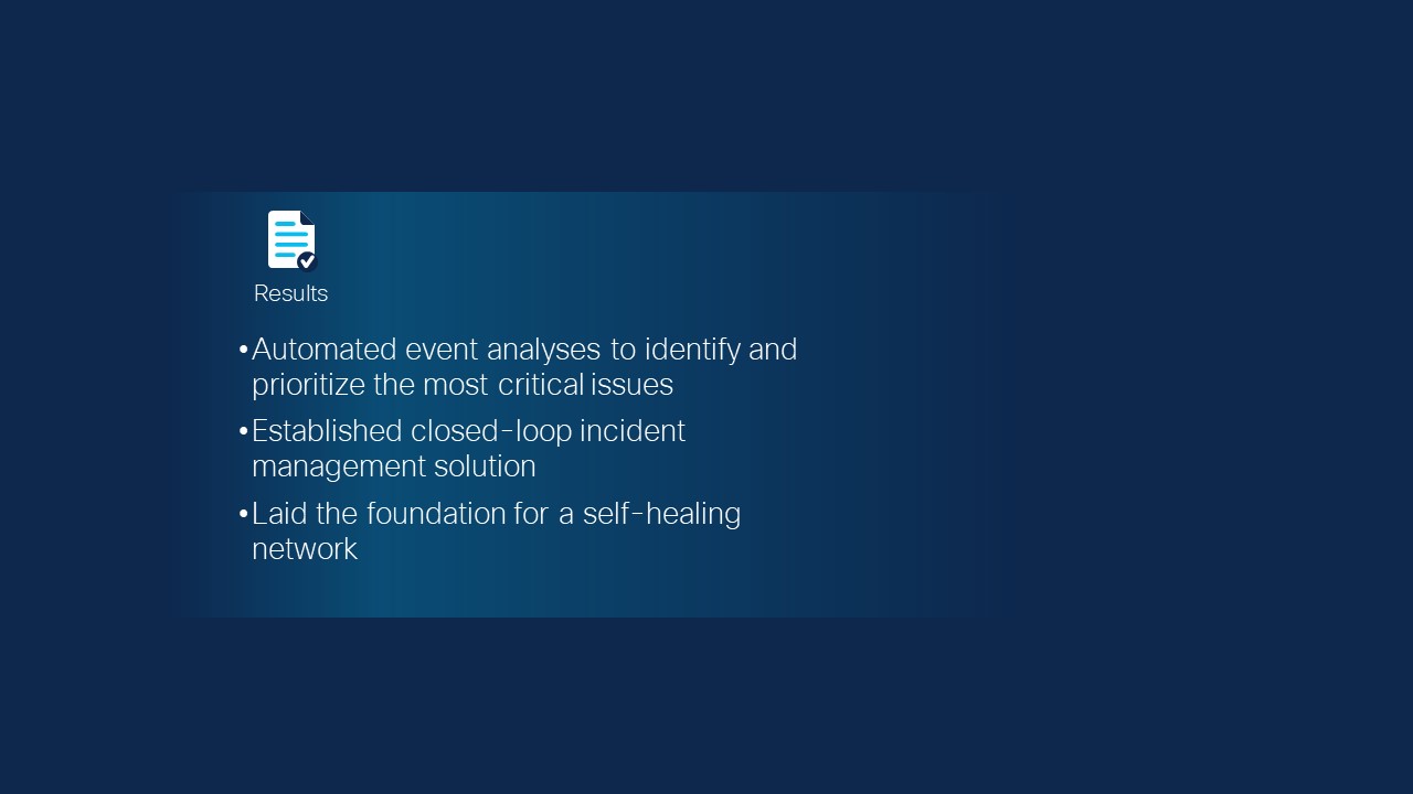 The solution finds and puts a spotlight on the events that can have an impact on performance and availability. As a result, Cisco IT operations are faster, more efficient, and increasingly proactive. The solution has also accelerated response times and freed up network engineering resources.