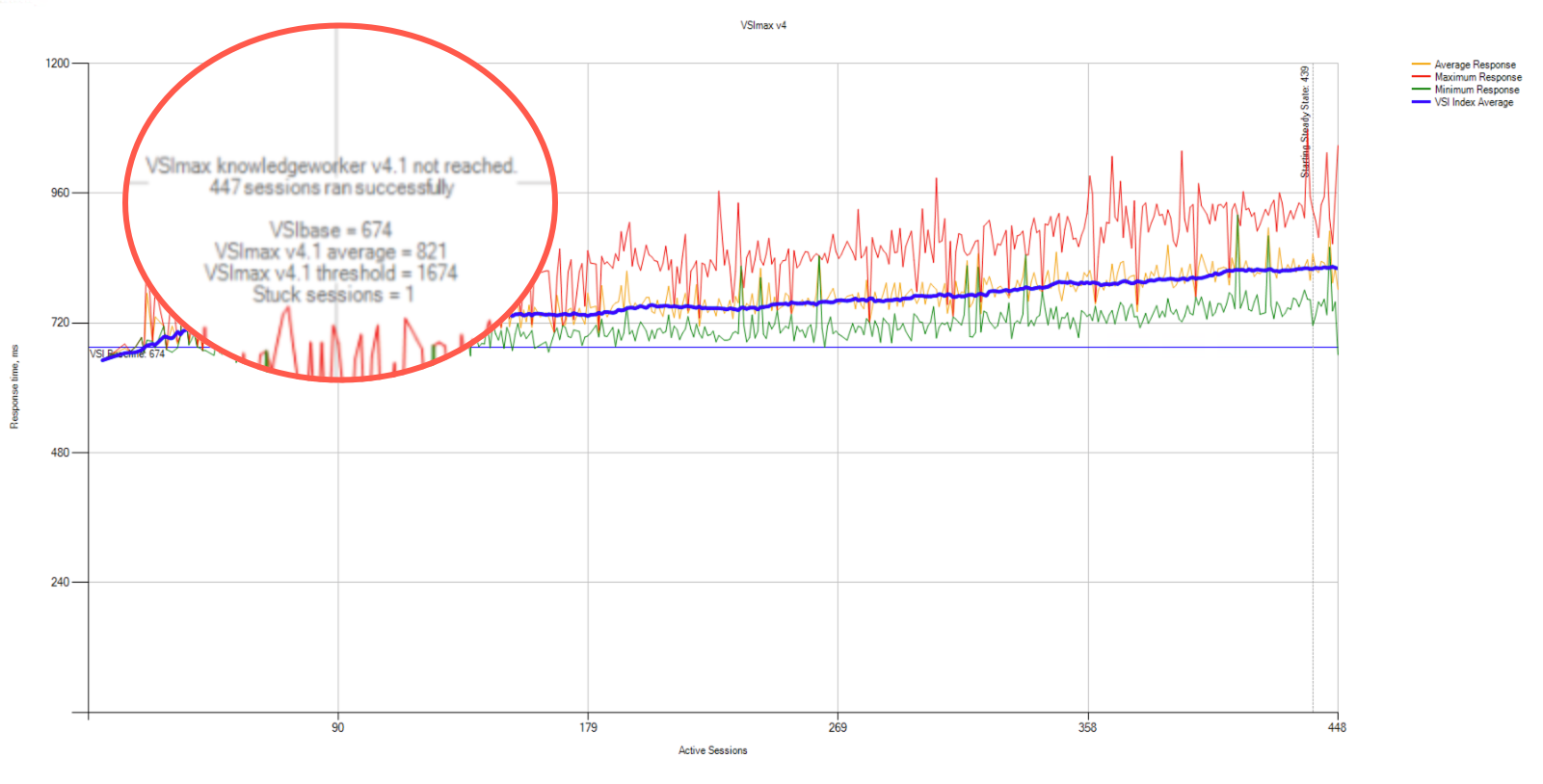 Initially, we hoped for a “cruising” speed of a couple of hundred simultaneous desktops. But just as the Starship Enterprise could easily speed to “warp factor 4” and beyond, we kept adding users to the test bed. To our amazement, we were able to drive over 400 Knowledge Worker desktops on a single C245 M6 server!
