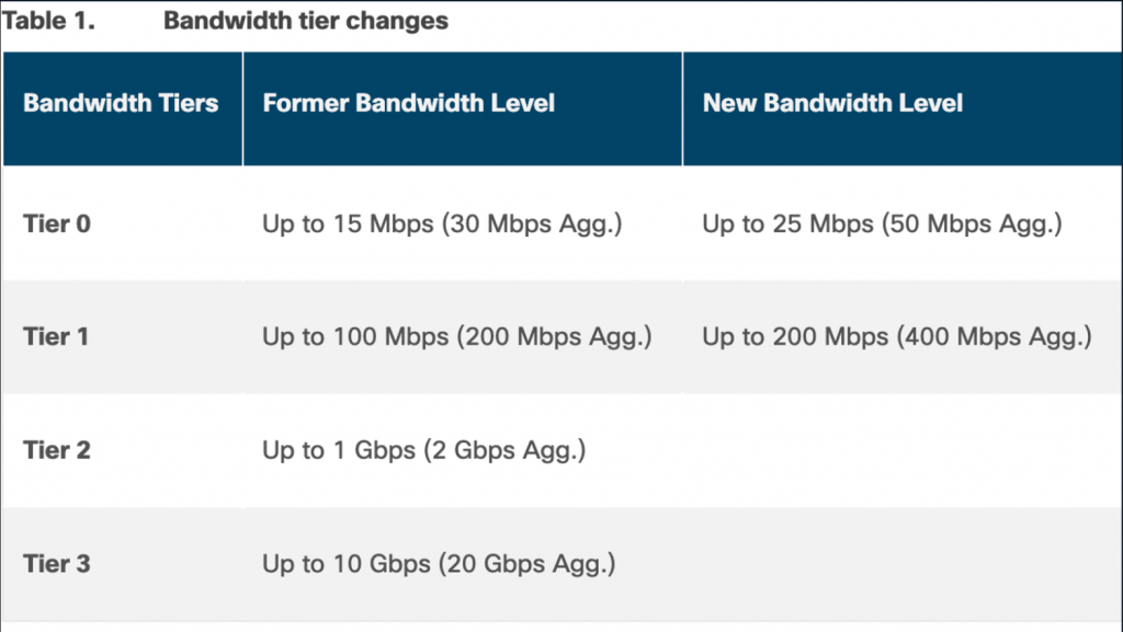 In addition to licensing changes Catalyst 8000V offers upgraded bandwidth tiers that can significantly improve throughput available between cloud instances and on-premises datacenter.