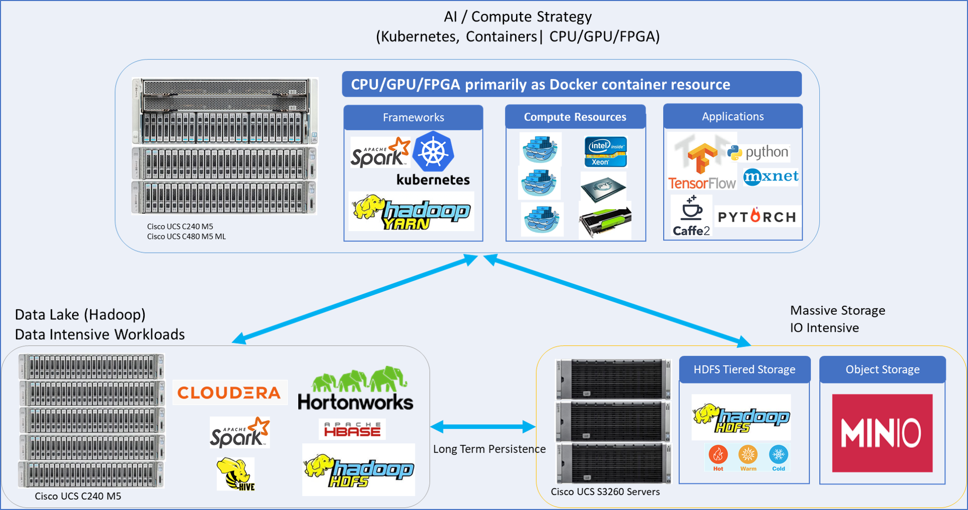 Adoption of artificial intelligence (AI) and machine learning (ML) is accelerating and Hadoop is emerging as one of the most common way of managing data for AI. We announced Cisco Data Intelligence Platform (CDIP) in June, paving the way for a tighter integration of AI/ML, Hadoop and Object Store. In September, we released two Cisco Validated Designs (CVDs) showcasing CDIP with Cloudera Enterprise Data Hub and Hortonworks Data Platform.