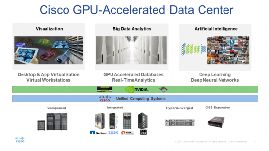 The combination of Cisco UCS Integrated Infrastructure for big data and analytics with NVIDIA K80 or P100 cards provides the robust infrastructure needed to run real-time analytics. See Cisco and NVIDIA solution with Kinetica here.