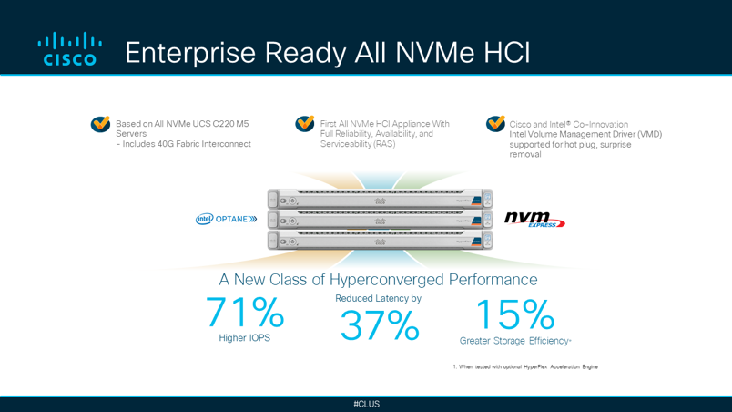 Also, on display will be the latest in core data center technology such as the new HyperFlex All NVMe with Intel Optane technology.