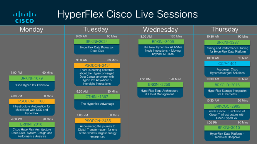 Hear from the HyperFlex Product Management team and customer at the various HyperFlex sessions in San Diego. Visit the session catalog and Schedule.