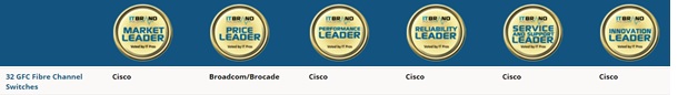 Anyway, Cisco also took a medal as the Market Leader in the Fibre Channel Switching and Performance as well as the leader in Performance, Reliability, Service & Support and Innovation categories. This medal haul was based on the agility, efficiency, responsiveness, and cost savings of the Cisco MDS Family, which is the cornerstone of Cisco storage networking portfolio.