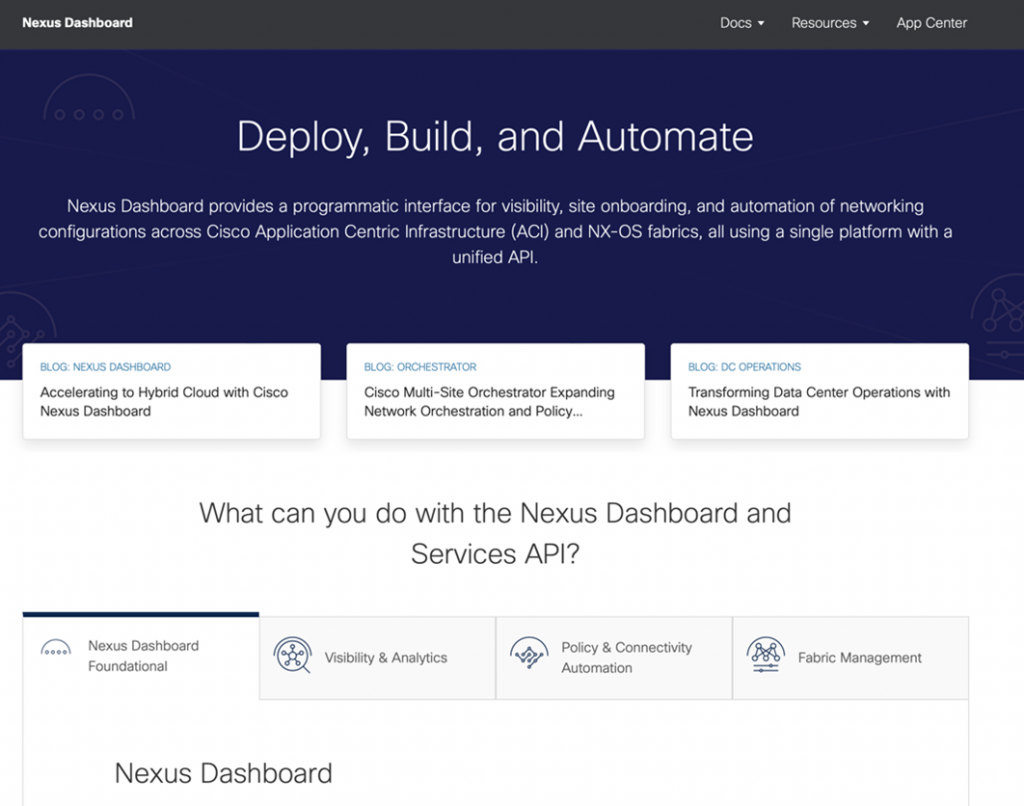 As part of our commitment to developer experience, these Decenter are kept up to date with any latest information or changes to the APIs to ensure that everyone has access to the relevant content they need, when they need it. We have DevCenters for data center technologies, such as ACI, NX-OS, Nexus Dashboard. We also have specific DevCenters for Infrastructure as Code, including one specifically for cloud networking, as well as for each IaC tool supported within the DevNet ecosystem, Ansible and Terraform. There is a ton of information that can be gleaned just from these resources – but this is just the beginning.