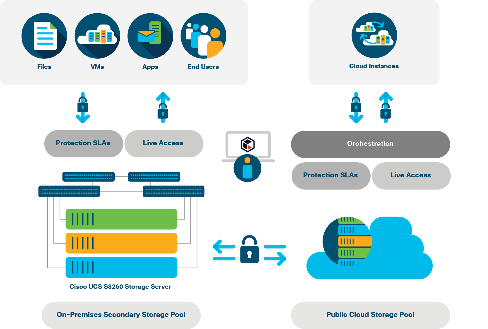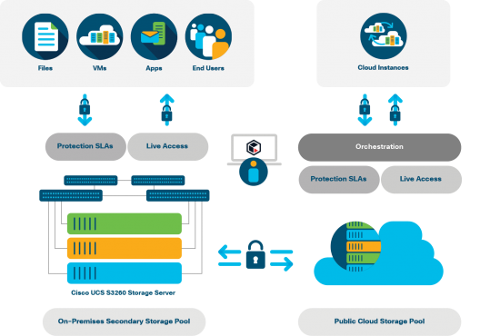 ScaleProtect with Cisco UCS runs on Cisco UCS S3260 hardware to enable a global view of all your data, with complete data portability and robust automation and orchestration features that help reduce operational complexity.