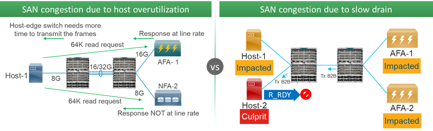 In a similar manner, Fibre Channel SANs have the same two congestion scenarios: