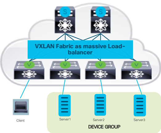 In a VXLAN fabric architecture, the endpoints, such as clients, physical servers, and virtual servers, are distributed across the fabric. Traffic flow from and to these clients and servers needs to be load-balanced in this fabric environment. With this ITD release, the single-switch ITD solution has been expanded to the VXLAN fabric so that now the fabric will act as a massive load-balancer. The NX-OS 9.3.1 release covers only the VIP-based load balancing mechanism in a VXLAN scenario, which means servers and clients can be connected anywhere in the fabric and glean the benefit of this fabric-based load-balancing function.