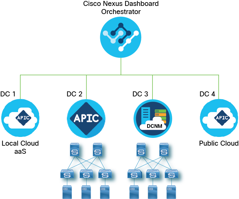 - A multi-site orchestrator that pushes high-level policy to the local data center controller—also referred to as a domain controller—and delivers the separation of fault domain and the scale businesses require for global governance with resiliency and federation of data center network.