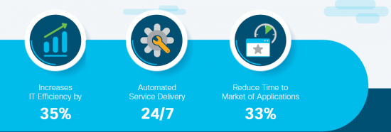 Cisco ONE Enterprise Cloud Suite increases IT efficiency, allows you to deliver services 24 hours a day and reduce time to market of applications.  It delivers the technology and processes your data center staff needs to say “yes” to any service request – regardless of location.
