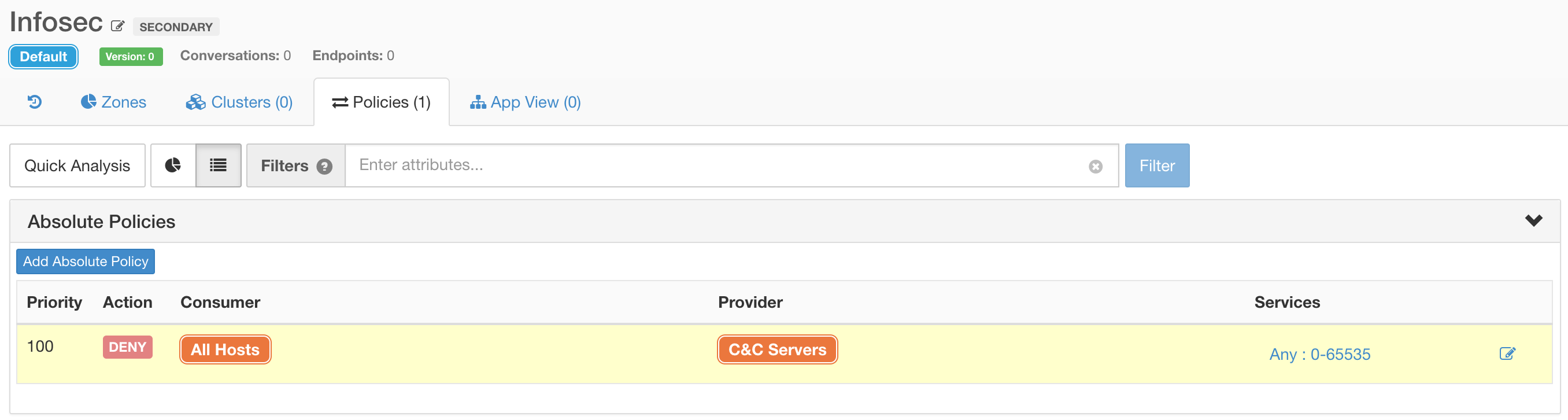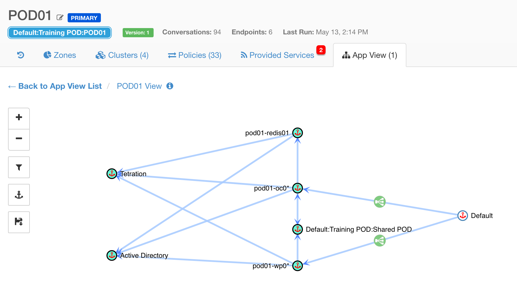 ![]() Application views help you understand how tiers are connected and what policies have been discovered |