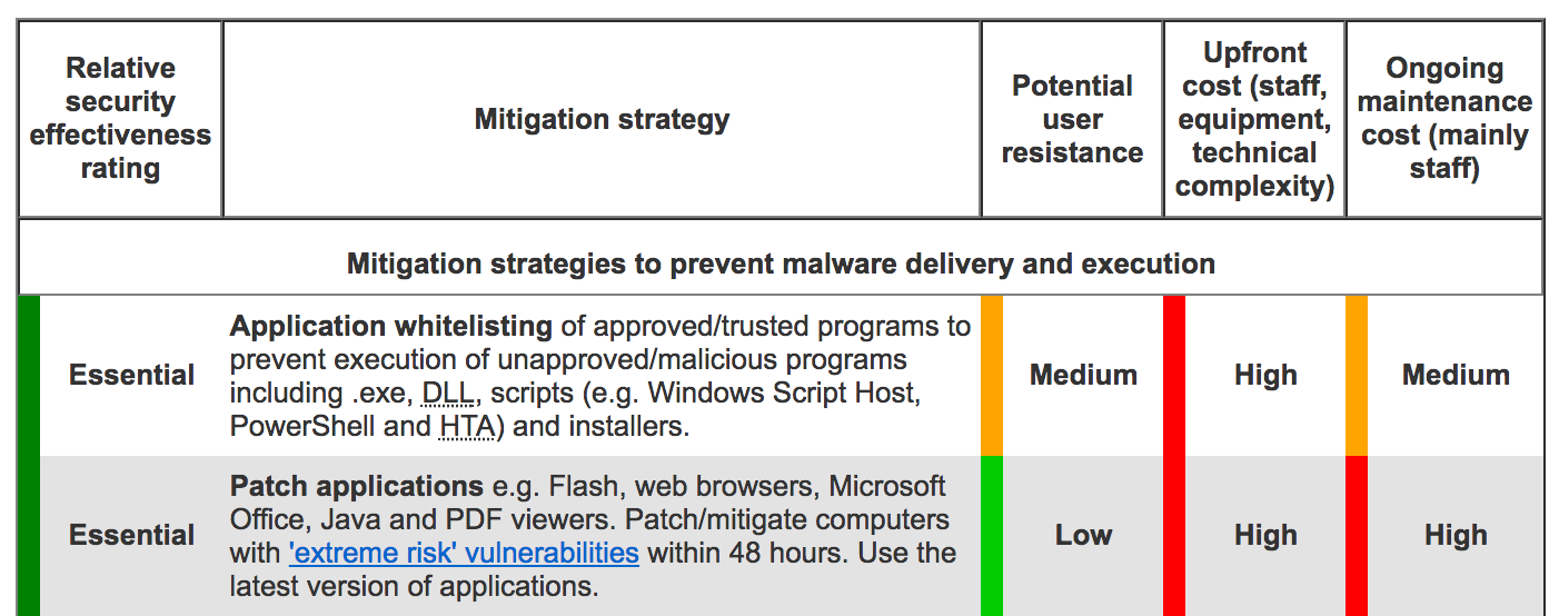 ![]() Taken from ASD “Strategies to Mitigate Cyber Security Incidents Notice“ |