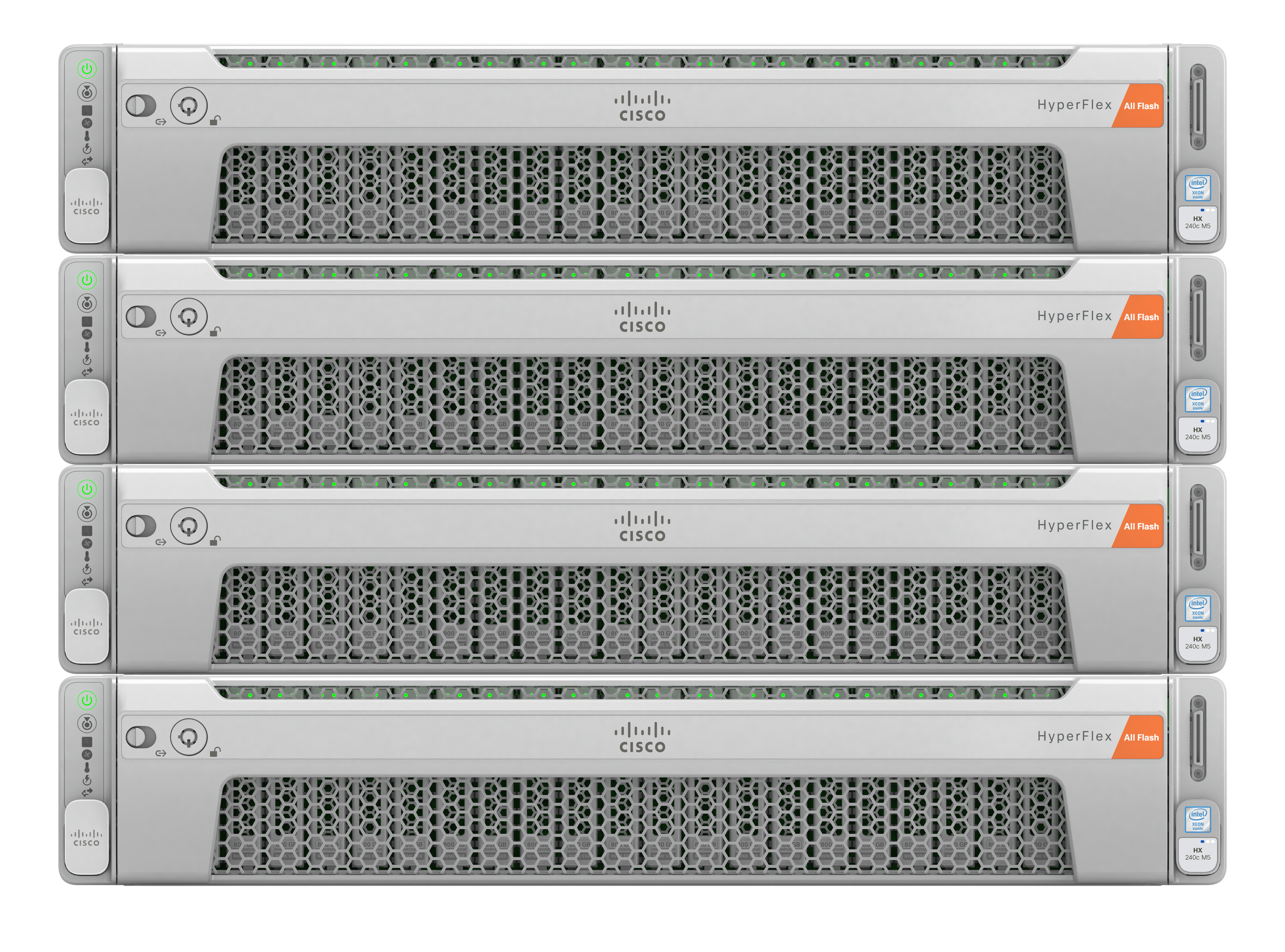 Mr. HyperFlex All Flash is a HyperFlex System with 4 HyperFlex All Flash nodes and 2 UCS Fabric Interconnects. He also has a NVIDIA GPU inside of him. Mr. HyperFlex All Flash lives in San Jose where he tests all sorts of application workloads. He prides himself on processing more IOPs (inputs/outputs per second) and running with lower latency than other hyperconverged infrastructure products.
