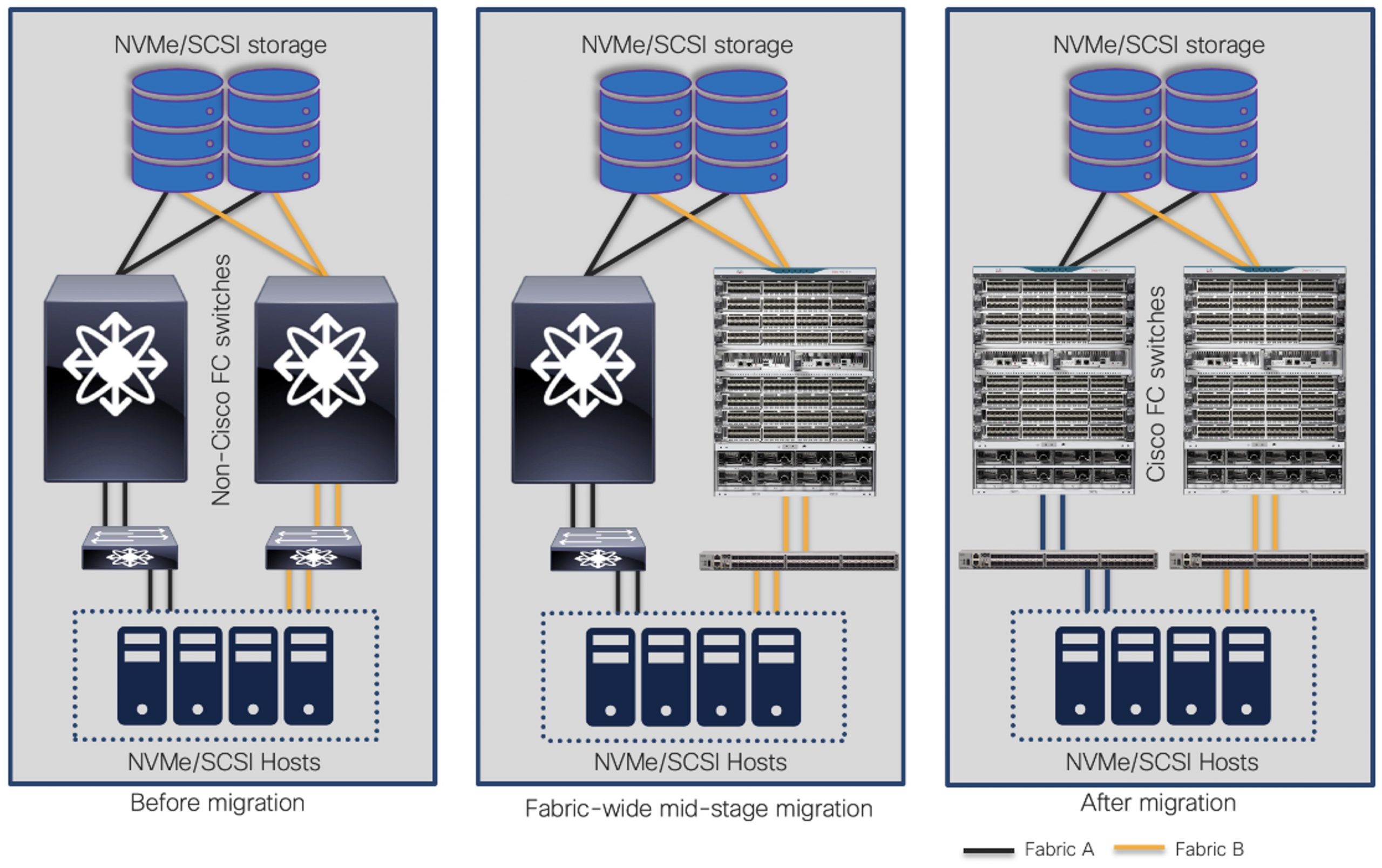 The short answer is Yes, as there is no disruption in SAN operations or downtime, when you choose to migrate to Cisco MDS directors and switches as described below. And, you will always have dual fabric, dual host path redundancy, and you can work on any single fabric at any time.