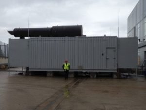 One key example is where DataVita have put in place a Tier IV resiliency design, including. N+N UPS systems (some DCs will just go for N+1 failover) – despite the fact that overall their’s is officially a Tier III facility. However it was when we were able to see, at first hand, the size of the backup generators (see below), which protect against the unlikely even of mains power failure, that the DataVita commitment to resiliency really came though. Wow they are big, as the photo shows!