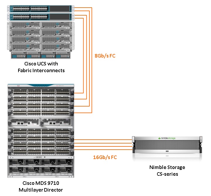 Cisco provides an Open, Flexible and Standards based platform and integrates well with Nimble and other FC and Ethernet based storage systems.