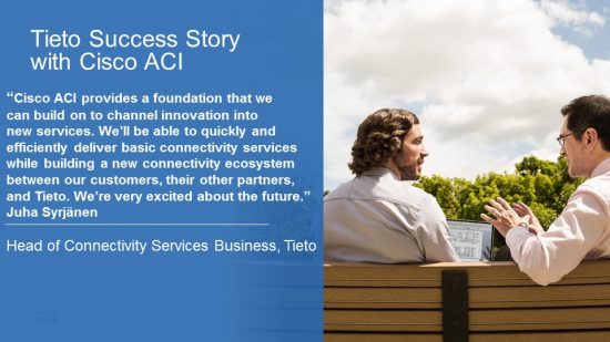 “Cisco ACI provides a foundation that we can build on to channel innovation into new services,” said Syrjänen. “We’ll be able to quickly and efficiently deliver basic connectivity services while building a new connectivity ecosystem between our customers, their other partners, and Tieto. We’re very excited about the future.”