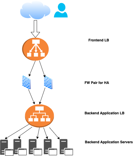 For web applications reachable over the internet, it is paramount that there is additional security built in to protect the application and the backend servers from security attacks. In such cases, it is common for customers to insert a firewall before the traffic hits the load balancer. The firewall could be Cisco’s FTD, or 3rd party firewalls from vendors like Checkpoint, Fortinet, VM-Series Next-Generation Firewall from Palo Alto etc, available in the public cloud marketplace. Cloud ACI provides the perfect automation for this use case by providing users with a way to build a multi node service graph. To provide high availability for the firewall, a load balancer may be placed in front of the firewall like shown in the below picture